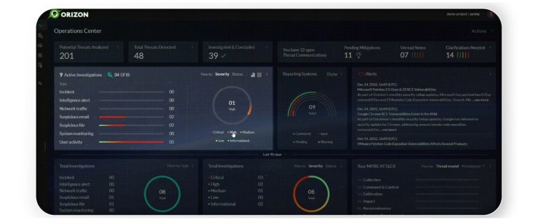 O serviço:O Orizon Oversight é uma plataforma abrangente concebida especificamente para centralizar e gerir as atividades do Centro de Operações de Segurança (SOC) de forma a otimizar os esforços de cibersegurança.